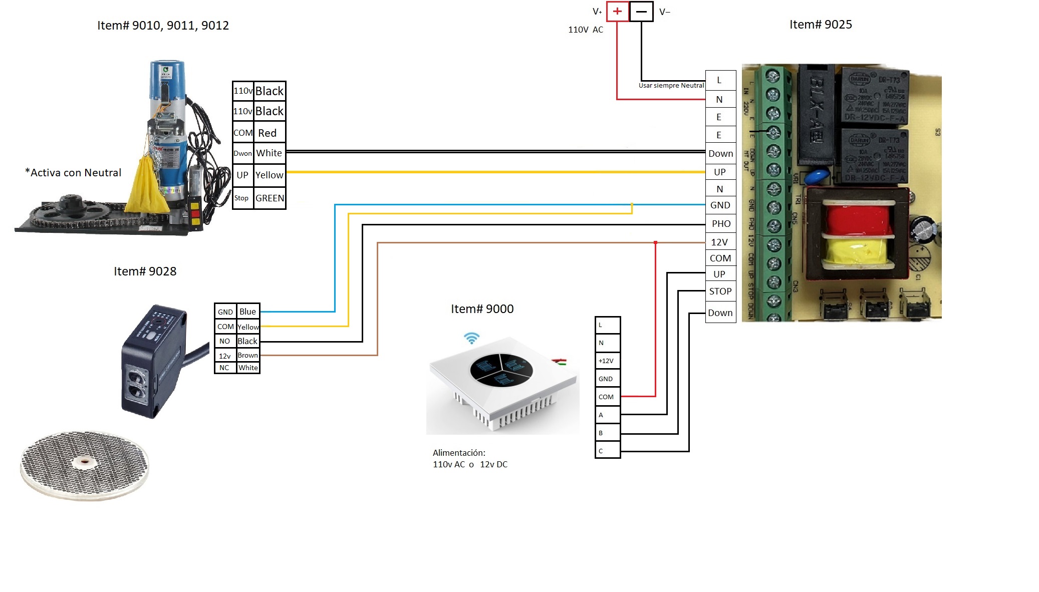 -Don't have standard push button: connect the switch A(any one of A/B/C) and Com terminal to the gate opener control board.
