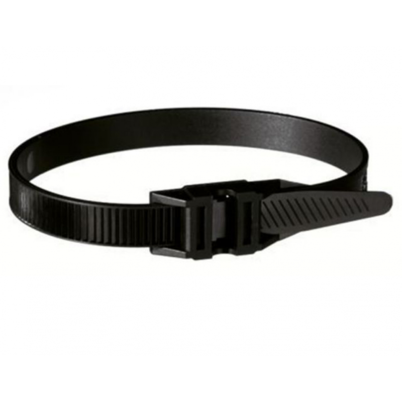 Model: EL-TY TELS1 Made of very strong Polyacetal (POM) System consists of endless strap, spacers and heads Head includes stainless steel pawls for a proper fixation Very secure fixing and good resistance to ageing and UV light Suits any bundle diameter and reduces inventory
