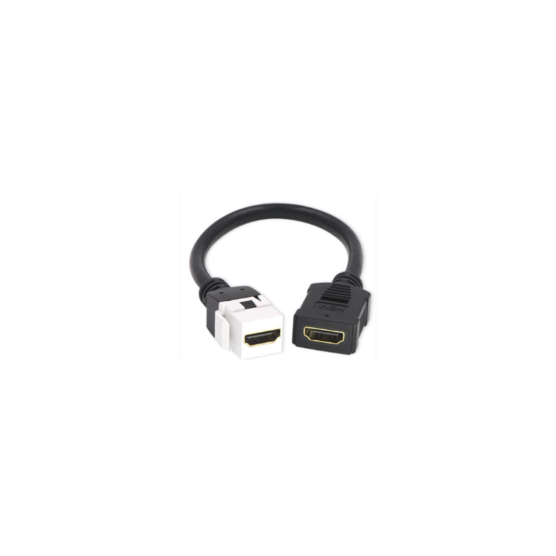 Model: HDMI-JACK-6 HDMI Keystone Style Jack Female-to-female connector 6" HDMI pigtail cable for easier installation Supports resolutions up to 4K UHD The Keystone insert is interchangeable with most Keystone wall plates on the market