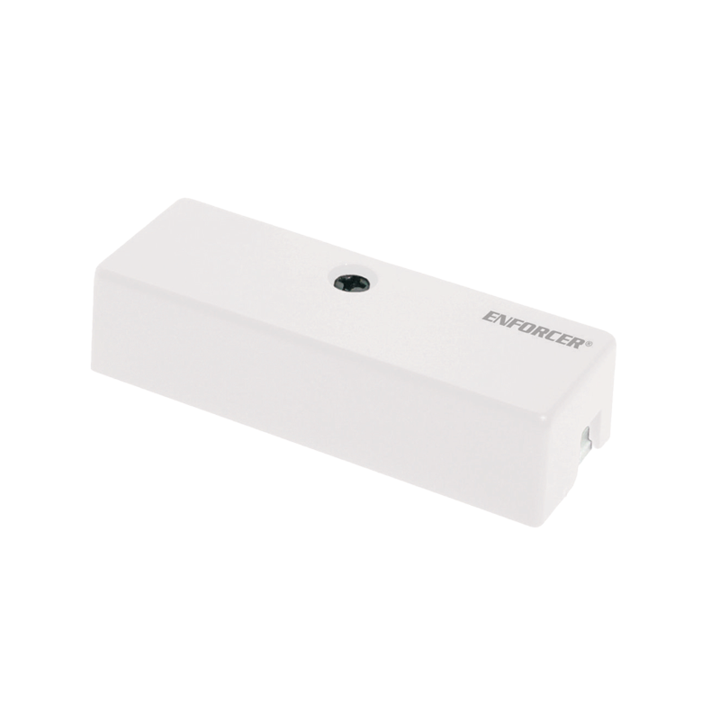 Model: SM-206Q/W Used for protecting sliding doors and windows where space is limited Contact reed switch is SPST, deactivated rhodium on gold under-plating, for a long life Unique glue/epoxy compound protects reed switch 1/4″, Press-fit mount 15″, (38cm) wire leads 1″ (25mm) Gap White case