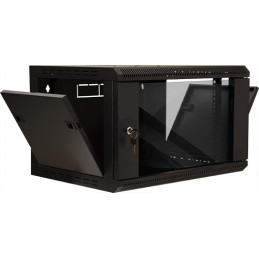 Model: KGC-9U-450 Size: 19" H x 23.5" W x 18" D. Weight capacity of 132 lbs. Robust welded structure. Rails with screwed cage nut. Total usable space of 17 inches from front to back.