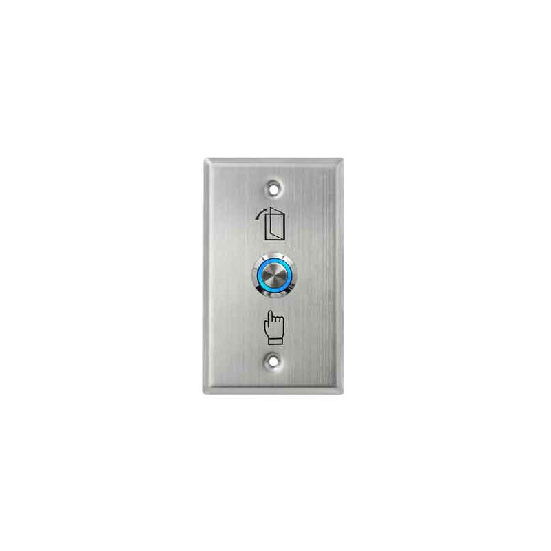 Model: SD-6176-SS1Q Piezoelectric request-to-exit plates for indoor or outdoor use, weatherproof (IP65) No moving parts for heavy duty use LED ring around button changes from green to red or red to green when the button is pressed Timed or toggle output Relay rated 2.5A@24VDC with two individually programmable outputs (NO/NC)