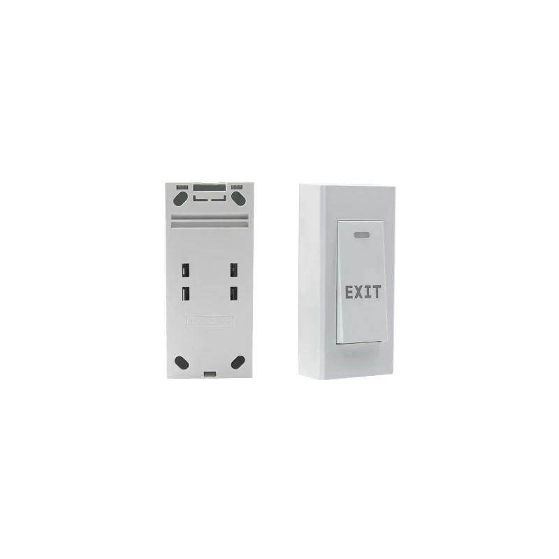 Model: K08 Button press for door opening. Rated voltage/current DC 36V/3A NO/COM output contact ABS flame retardant material.