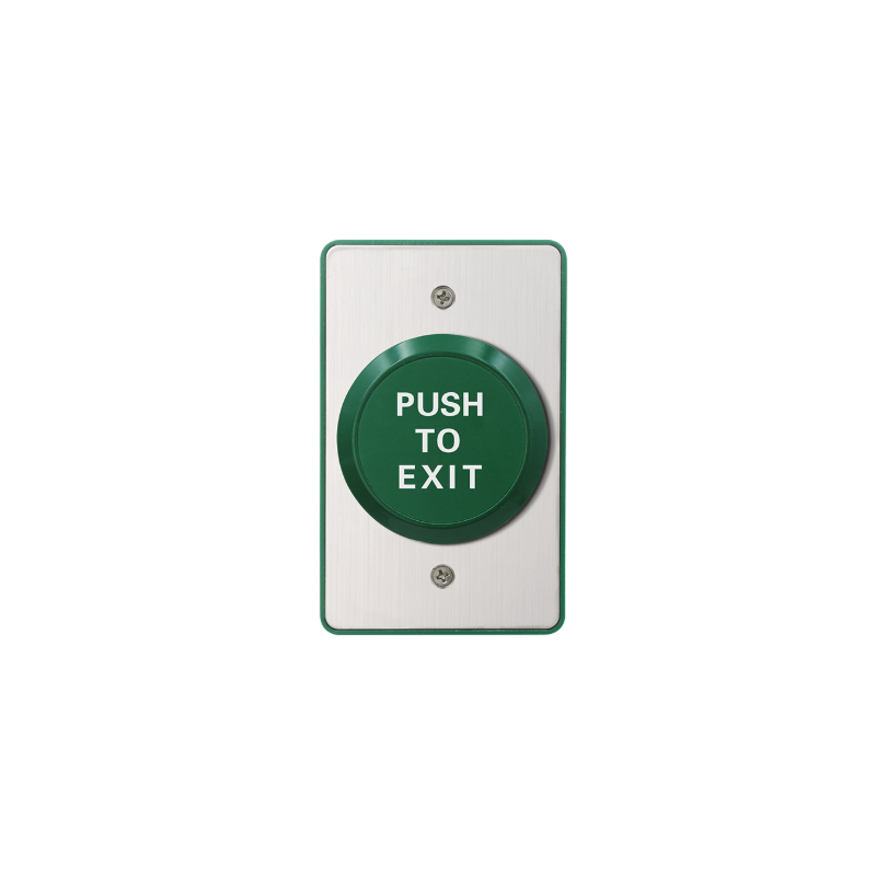 Model: SD-7101KBPE1Q Stainless-steel plate Momentary push-button switch with ring guard Contact rated 1 Amp@125VAC “EXIT” and “SALIDA” silk-screened on plate Weatherproof (IP65) for indoor/outdoor use
