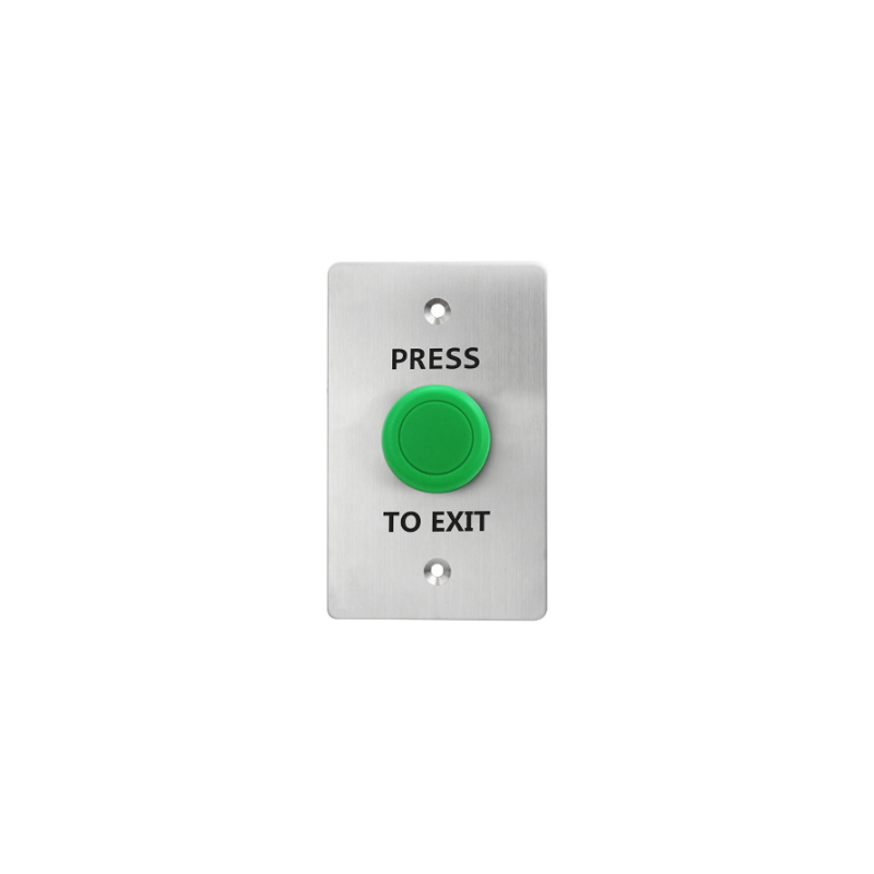 Model: SD-7201GCPE1Q Stainless-steel face-plate “Exit” and “Salida” silk-screened on plate Fits into standard single-gang box Green mushroom cap push button NO/NC contact rated 50A@24VAC