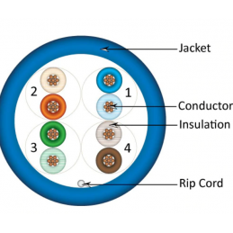 063-512/ST/BL CAT6, UTP, PVC Jacket, 8-Conductor, 24AWG, Stranded Bare Copper, 550MHz, CM Rated, 1000ft, Pull Box, Blue