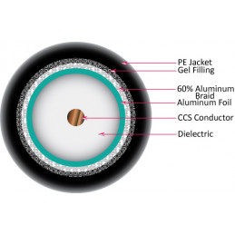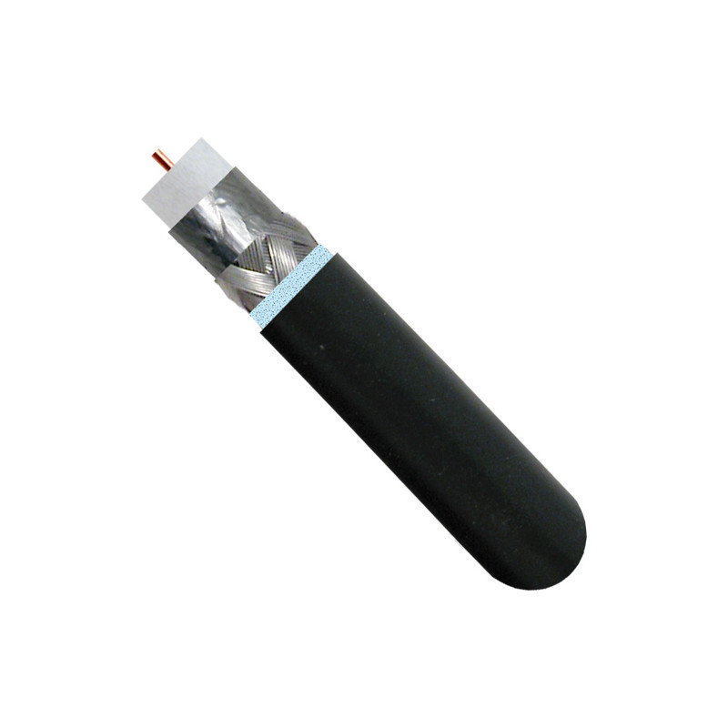 Model: 107-2175/DB/BK 95% Bare Copper Braid 20AWG Solid Conductor Direct Burial (Gel Filled) Polyethylene Jacket (PE) 75 Ohm Impedance ISO 9001:2000 ROHS Compliant 1000ft Wooden Spool