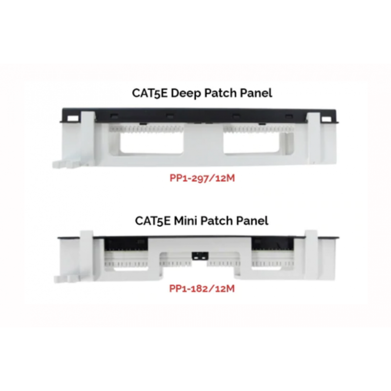 Our preloaded vertical CAT5E 12-port patch panel is perfect for your small home or office. This CAT5E Ethernet Patch Panel has a 12 Port configuration and contains flush mounted RJ45 ports. The unique feature of this patch panel is that the IDC contacts are closer to the front of the panel which offers more space for the technician to terminate the cable connections. Our patch panels meet and exceed industry standards, ensuring safety and maximizing the performance of your network.