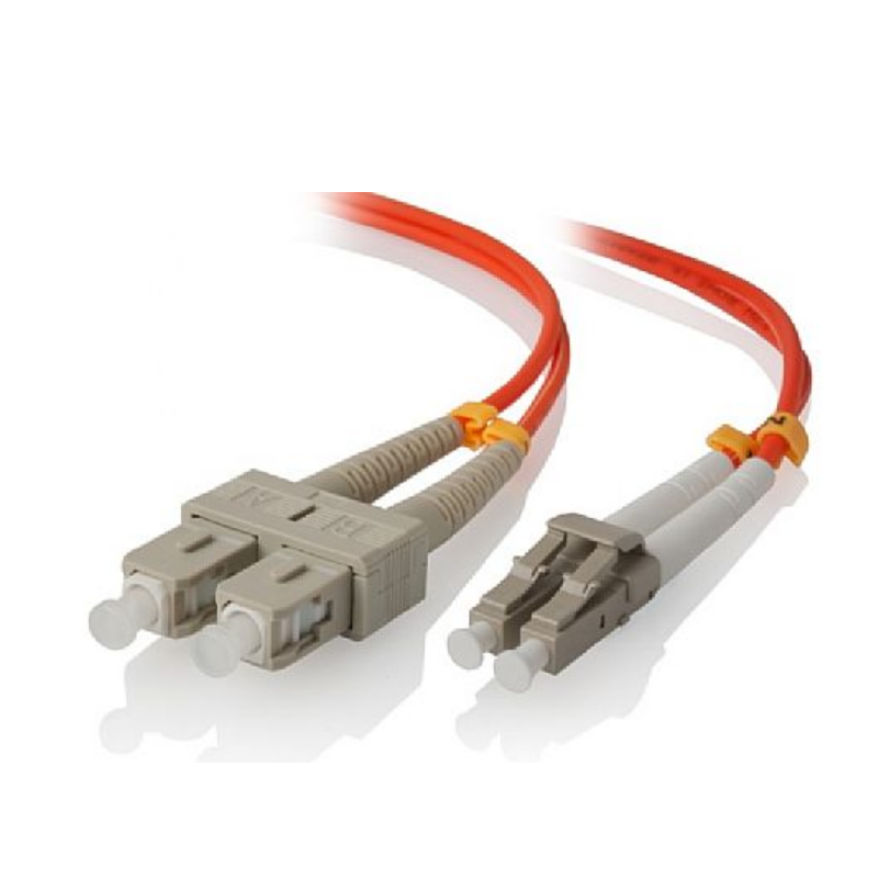 This Multimode 62.5/125um (OM1) laser optimized fiber optic cable fitted with duplex LC connector on one end & with duplex SC connector on another end (62.5µm core with 125µm cladding). OM1 fiber with 2.0mm PVC (-OFNR) or LSZH (Low Smoke Zero Halogen) aqua jacket.