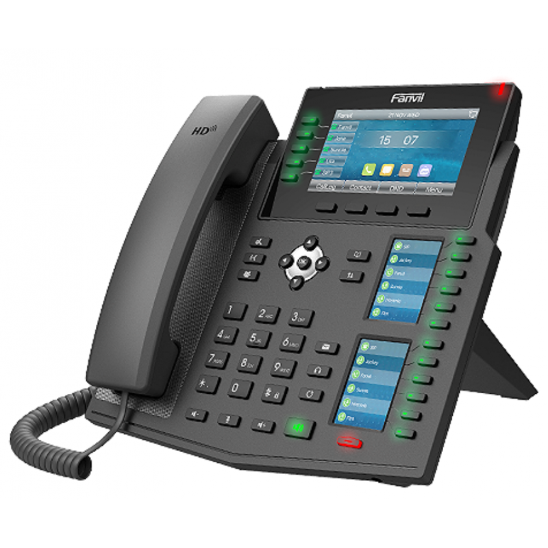 Model: X7A  Android 9.0 OS 20 SIP lines 7-inch color touch screen with 112 one-touch DSS keys External Fanvil USB camera (optional) 1080P HD 3-way video conference & 10-way audio conference, video codec H.264 HD audio with Harman speaker, Wideband codec G.722 and audio codec Opus Built-in 2.4G/5G Wi-Fi & Bluetooth Support EHS headset Support SIP...